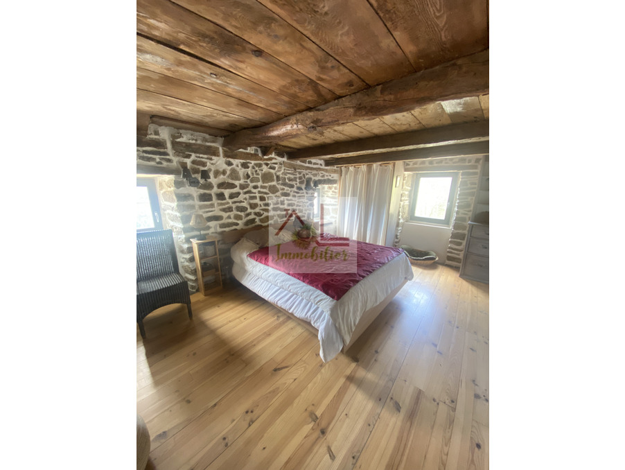 Nichée au coeur de l'Ardèche, dans un hameau paisible et plein de charme, cette authentique maison de village exposée plein sud, vous séduira par sa vue imprenable sur les montagnes ardéchoises. Elle se compose d'une spacieuse pièce de vie lumineuse avec cuisine équipée ainsi qu'une salle d'eau. À l'étage, vous trouverez deux chambres confortables ainsi qu'une salle de bains. L'extérieur offre une grande terrasse joliment fleurie, idéale pour profiter des beaux jours dans un environnement calme. Un studio d'été en rez-de-chaussée, indépendant, vient compléter le bien : parfait pour de la location saisonnière ou pour recevoir famille et amis. La maison est vendue entièrement meublée, avec des meubles réalisés sur mesure. Cette maison clés en main n'attend plus que vous, vous n'avez plus qu'à poser vos valises !