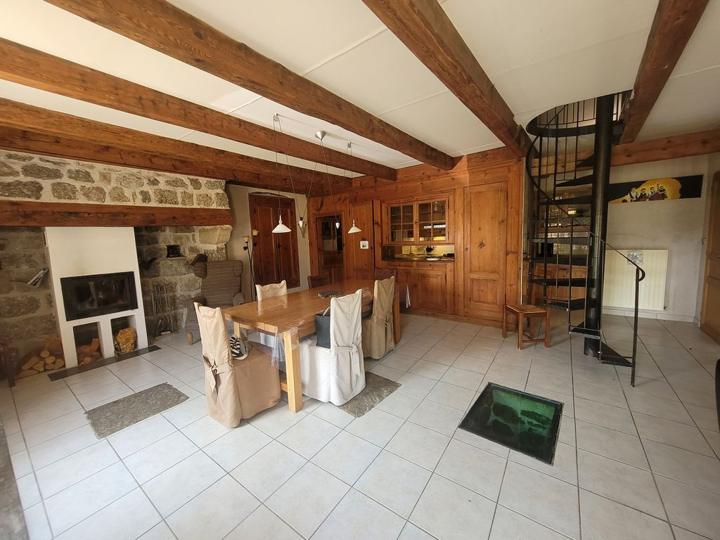 Dans un hameau à 10 min du Lac de Naussac et de Langogne, dans un cadre naturel et tranquille, ce corps de ferme du XIXème siècle restauré dans les années 2000 offre une surface de 220 m² habitables. Il comprend un espace de vie spacieux de 110 m² aménagé dans l'ancienne grange. Au même niveau vous trouverez une cuisine équipée ouverte sur un séjour de 50 m² où se trouve un puits apparent, une suite parentale avec salle de bains balnéo, un WC et une buanderie. L'étage, également desservi par un accés extérieur, offre deux chambres, une salle d'eau, un WC et une seconde suite parentale avec sa salle de bains. Cette propriété comprends également une ancienne étable de 115 m², à réaménager comme vous le souhaitez ainsi que deux dépendances en pierres de pays : une charmante maison de 50 m² répartis sur deux niveaux (piéce de vie avec cuisine équipée, chambre et salle d'eau/WC) et une ancienne forge de 13 m² transformée en chambre. Idéale pour un projet d'accueil touristique ou familial. L'ensemble immobilier s'étend sur plusiieurs parcelles de terrain d'une surface totale de 1088 m². Ce bien atypique est un véritable coup de cœur, alliant modernité et authenticité dans un environnement apaisant. A VISITER !