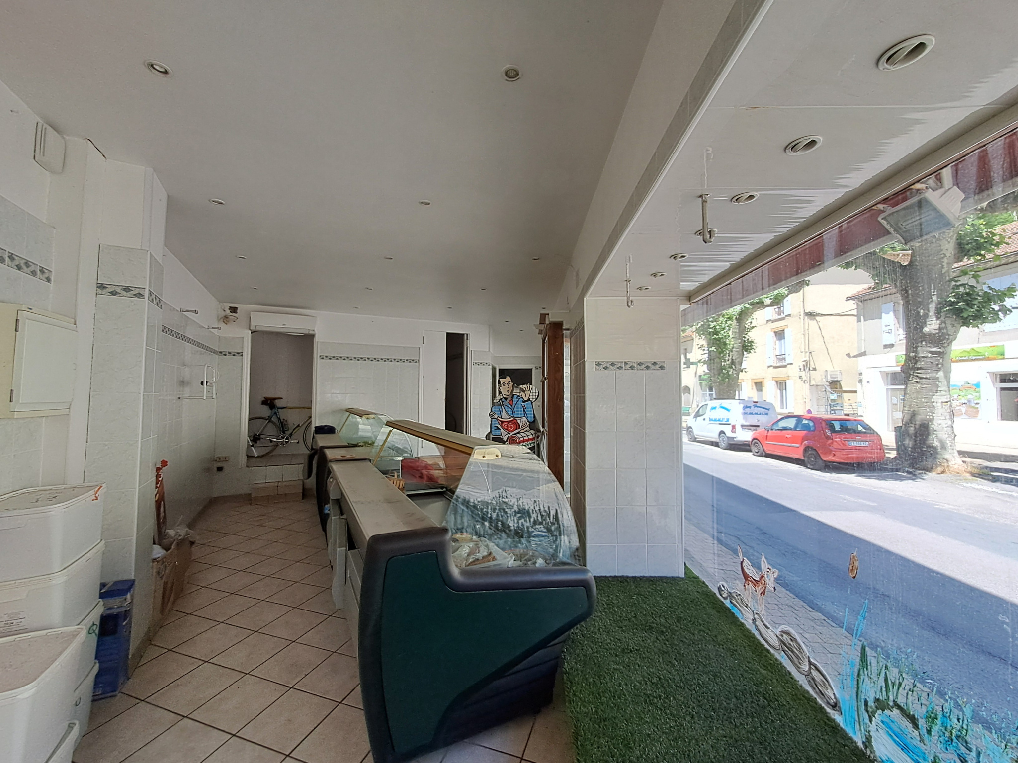 Le local commercial anciennement boucherie est composé d'un magasin de 32 m² avec une belle vitrine, pignon sur rue. Puis un atelier en arrière boutique avec un point d'eau et une chambre froide. Au niveau inférieur, avec accès sur l'extérieur, se trouvent des sanitaires, une ancienne plonge donc des arrivés et évacuations d'eau, le tout formant un espace de 36 m².