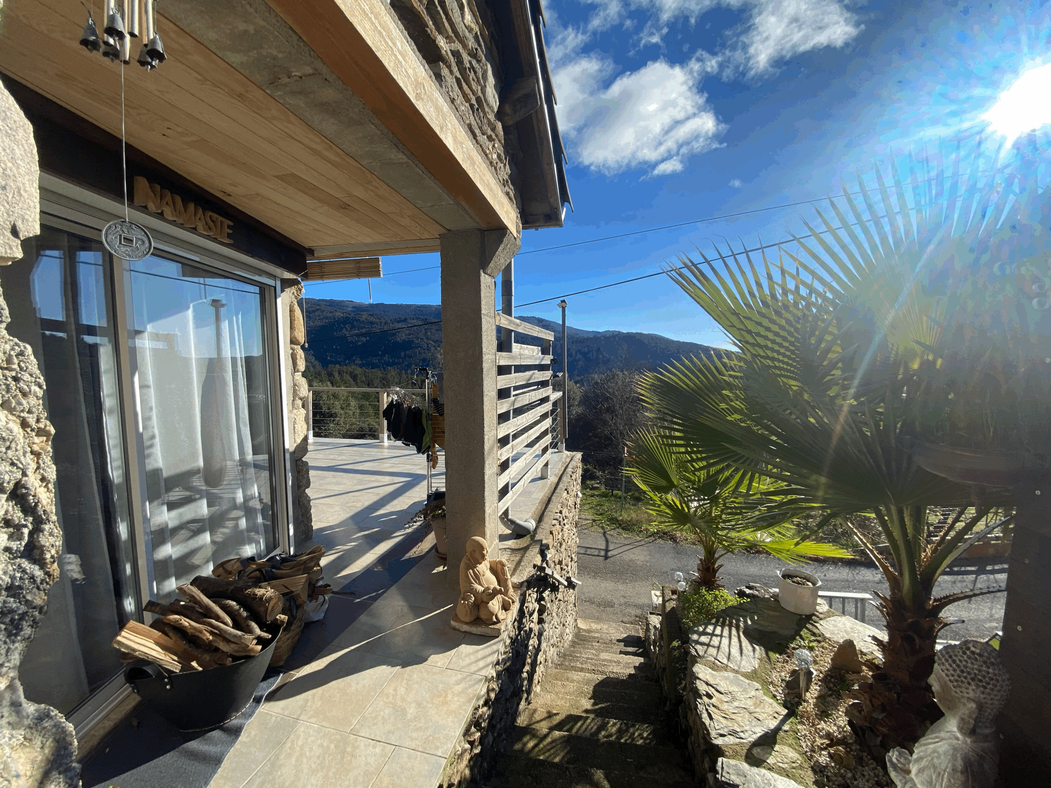 Découvrez cette superbe maison entièrement rénovée, offrant 86 m² de charme. Vous apprécierez dès l’entrée une grande pièce de vie lumineuse, parfaite pour vos moments en famille. Elle se compose de deux chambres, d’une salle d’eau, ainsi que d’un espace modulable selon vos envies : coin bureau, dressing, espace détente… Une mezzanine peut également servir de chambre supplémentaire ou d’espace loisirs. À l’extérieur, profitez d’une magnifique terrasse avec vue imprenable sur les montagnes, idéale pour vos repas et instants de détente. Un agréable jardin complète l’ensemble, offrant un bel espace de nature. Le point fort de cette maison : elle est totalement autonome grâce à son installation de panneaux solaires, vous garantissant confort et économies au quotidien. Elle bénéficie également d’une source naturelle sur le terrain, parfaite pour l’arrosage du jardin ou tout autre usage selon vos besoins. Un grand garage vient compléter ce bien, offrant une capacité de stockage appréciable ou la possibilité de créer un atelier selon vos projets. Vous n’avez plus qu’à poser vos valises et profiter pleinement de ce cadre exceptionnel.