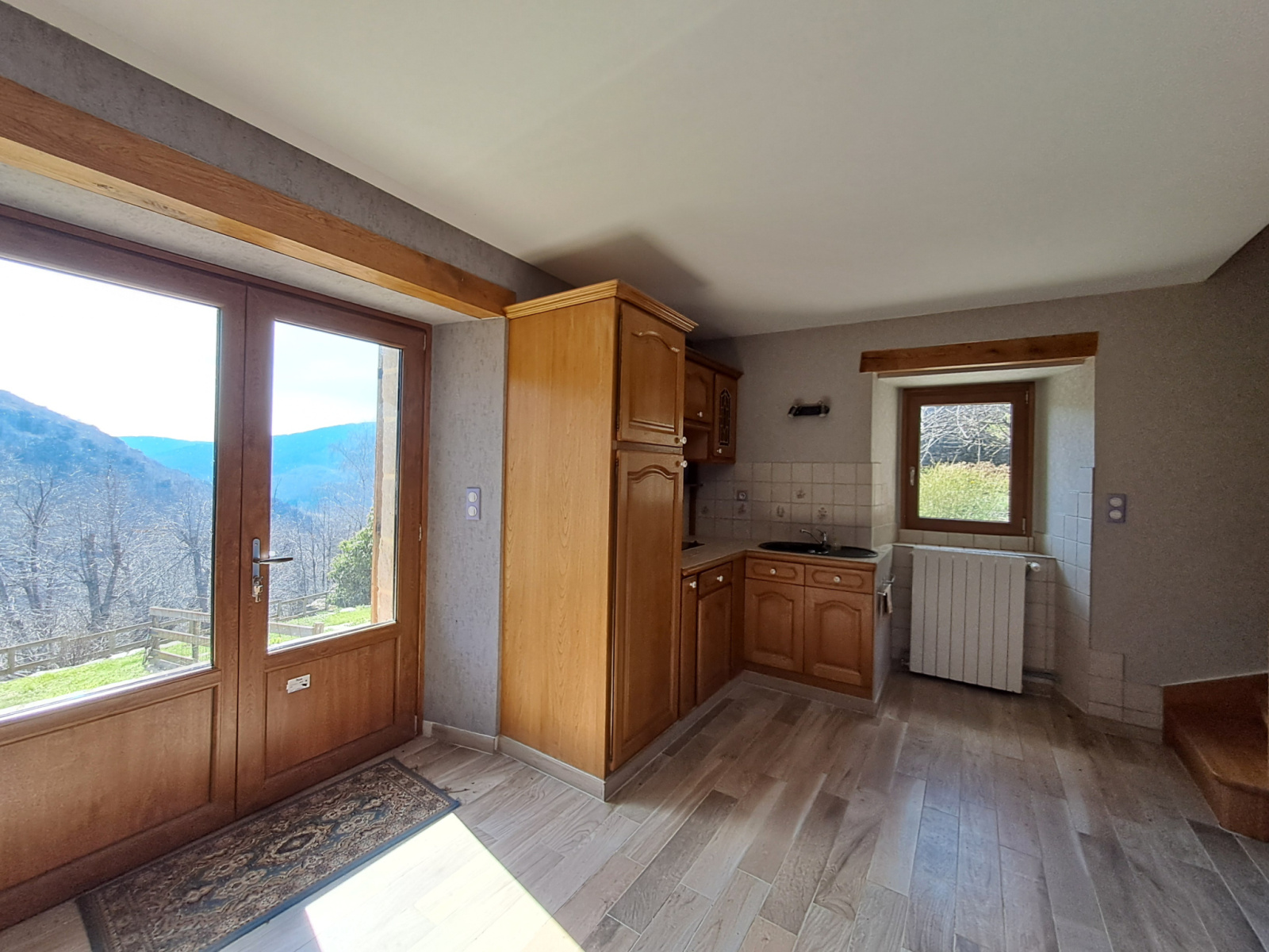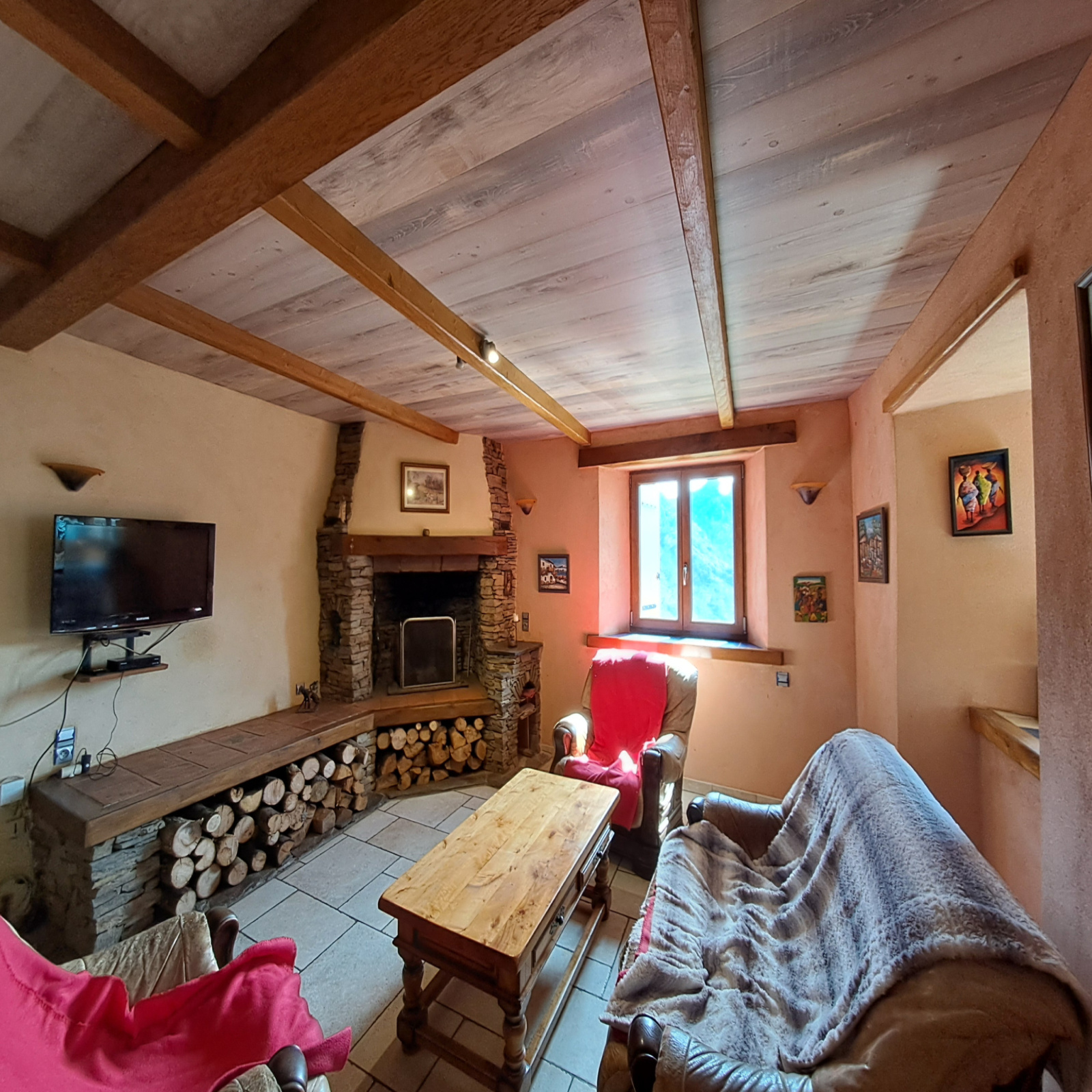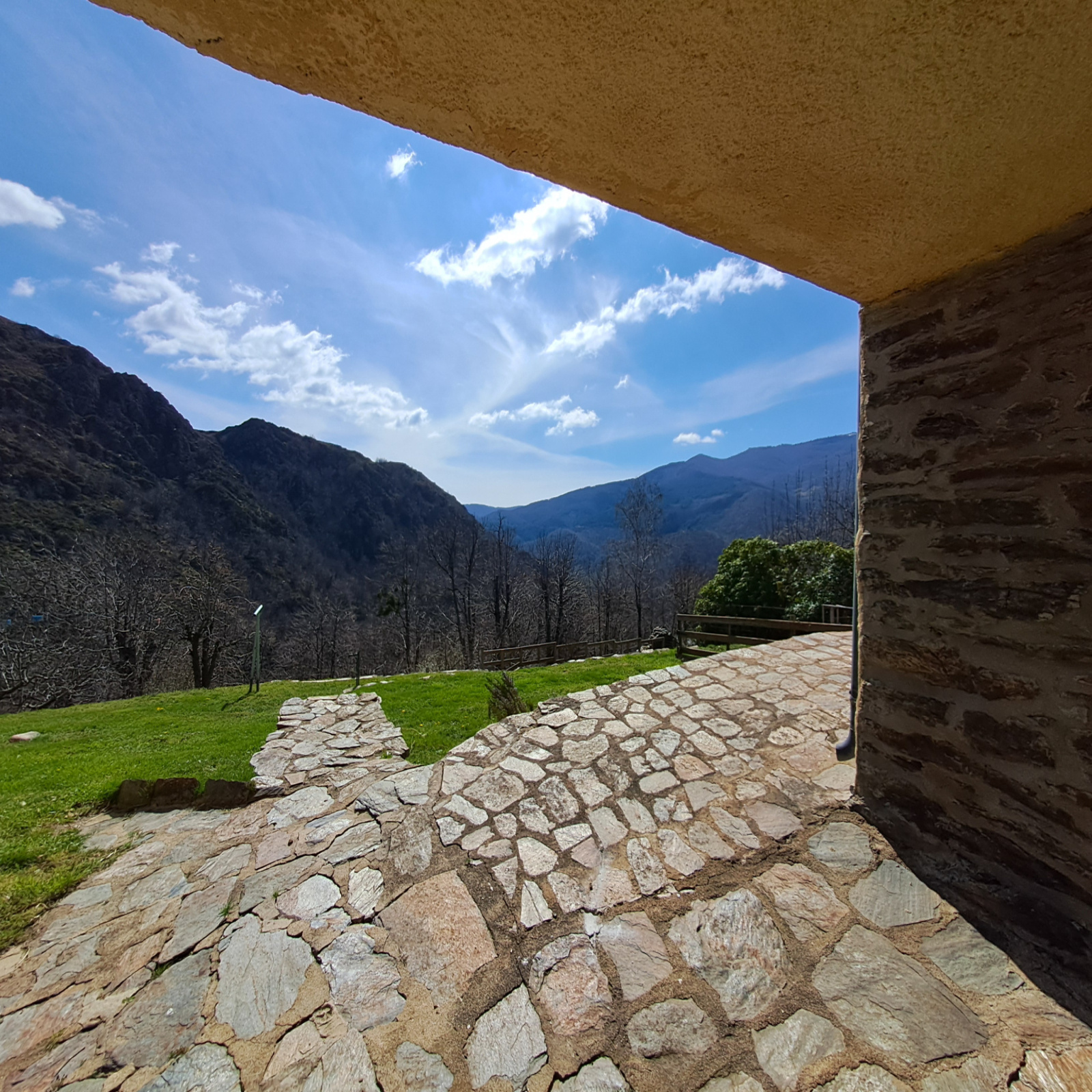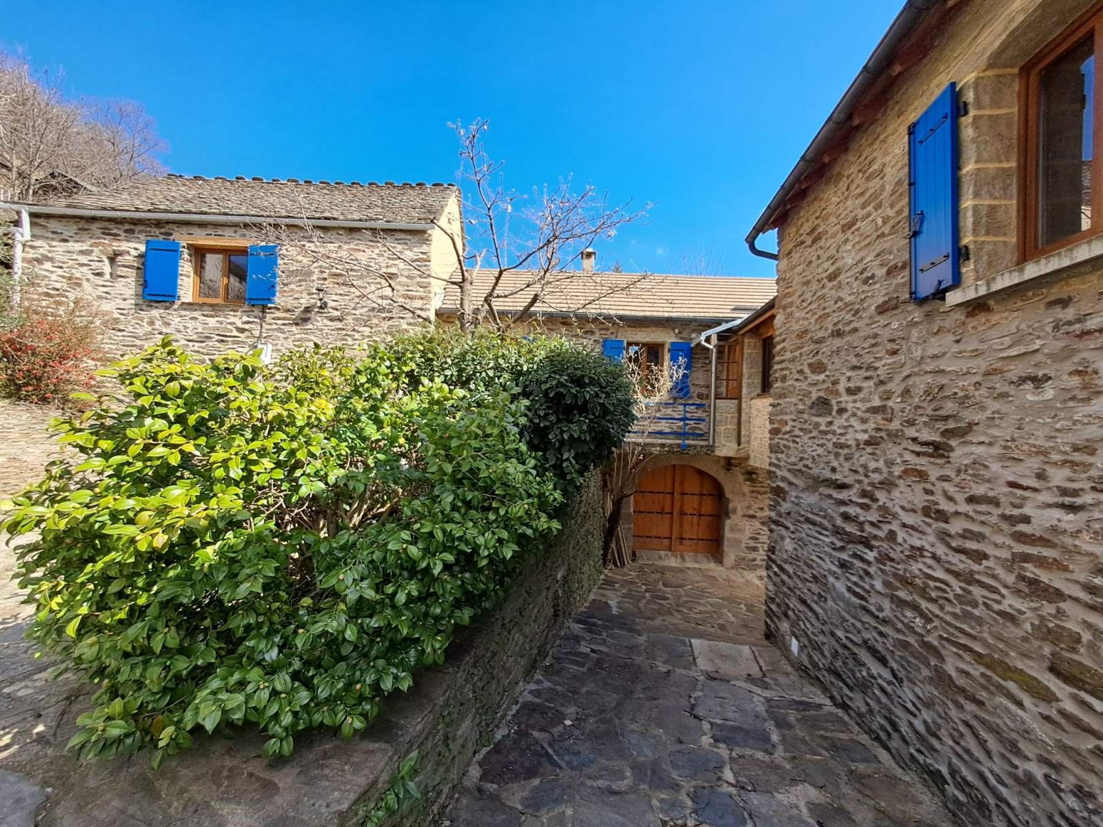 Vous pourrez profiter de beaux espaces extérieurs, un côté entièrement dallé avec les pierres du pays et un côté jardin arboré avec possibilité de potager. Le plus : une source commune, vous offrira un droit d'iirigation.